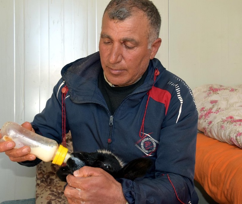 Hayvancılıkla uğraşan Feyat Polat, 20 gün önce dünyaya gelen ve annesi doğum sonrası ölen kuzuya evinde bebek gibi bakıyor.