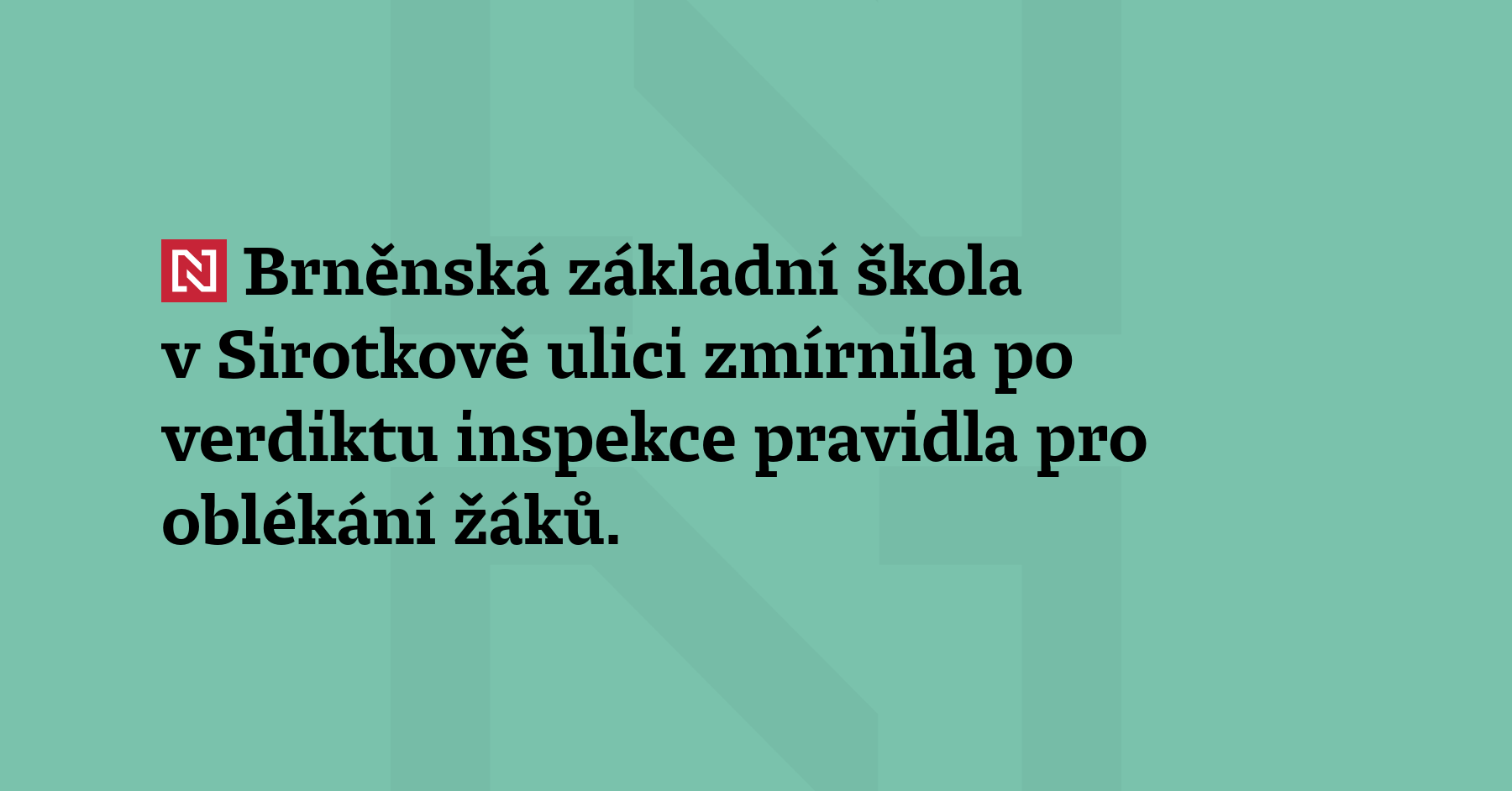 Brněnská základní škola v Sirotkově ulici zmírnila po verdiktu inspekce pravidla pro oblékání žáků. Nezakazuje už žákům nosit tepláky nebo třeba oblečení s velkým výstřihem. Pravidla musela škola změnit po zásahu České školní inspekce, která v tom spatřovala protiprávní omezení přístupu k výuce a školu vyzvala k nápravě. (iRozhlas)
