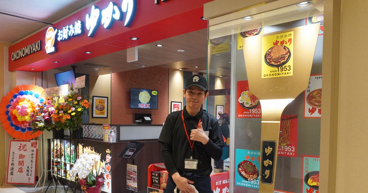 “鉄板”スポットに? 大阪駅近くのお好み焼き店に金の巨大コテ登場