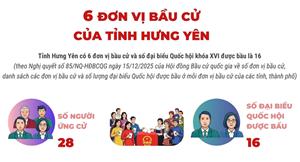 Theo Nghị quyết số 85/NQ-HĐBCQG ngày 15/12/2025 của Hội đồng Bầu cử quốc gia về số đơn vị bầu cử, danh sách các đơn vị bầu cử và số lượng đại biểu Quốc hội được bầu ở mỗi đơn vị bầu cử của các tỉnh, thành phố, Hưng Yên có 6 đơn vị bầu cử và số đại biểu Quốc hội khóa XVI được bầu là 16.