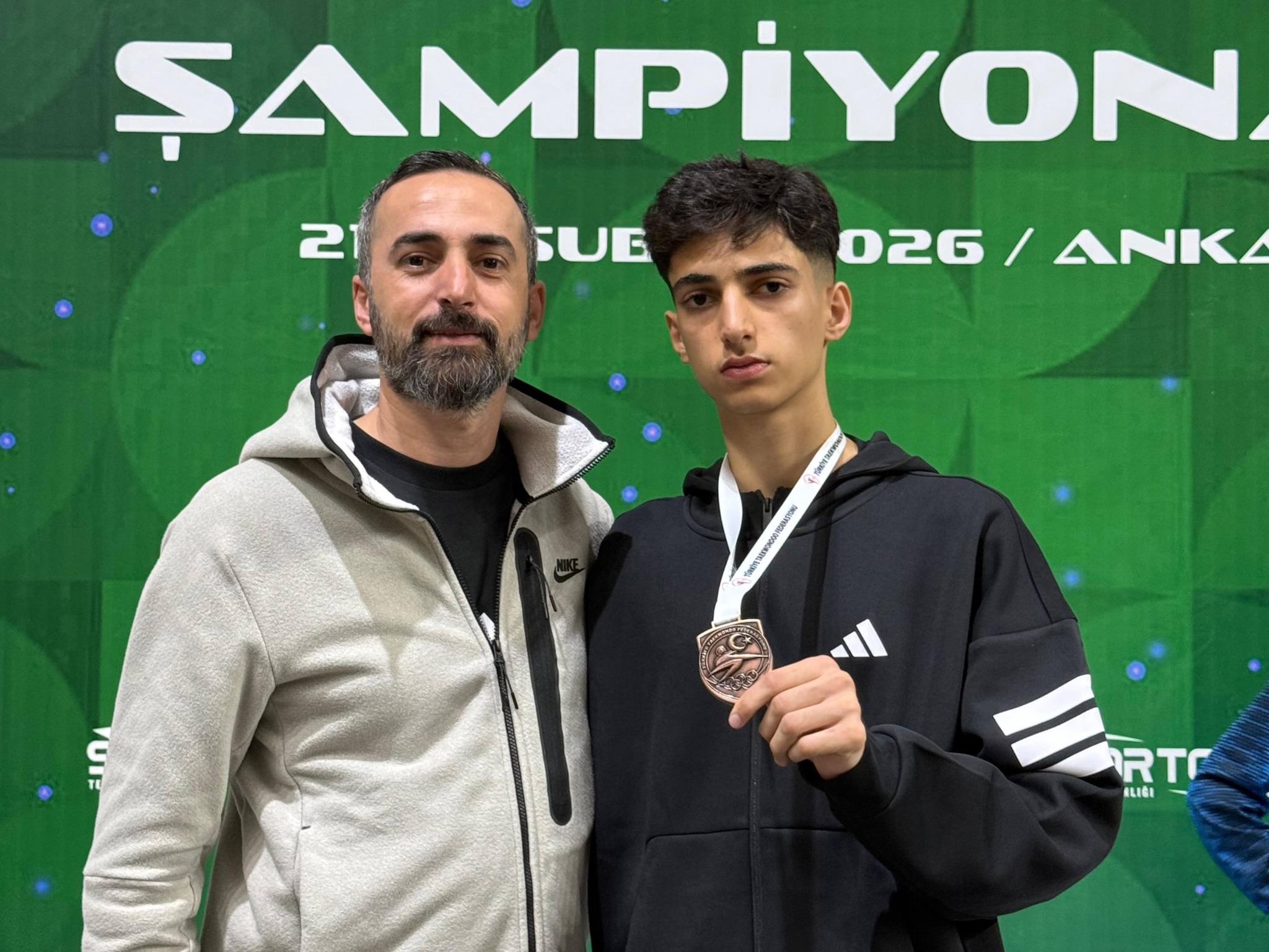 21-23 Şubat 2026 tarihlerinde Ankara’da düzenlenen Yeşilay Gençler Türkiye Taekwondo Şampiyonası’nda Mersinli sporcu Halil Efe Dolaş, 55 kg kategorisinde Türkiye 3.’sü olarak büyük bir gurur yaşattı. Azmi, disiplini ve mücadelesiyle kürsüye çıkan sporcu, emeği ve katkıları için antrenörleri Mustafa Dolaş ve Medet Dolaş tebrik edildi.