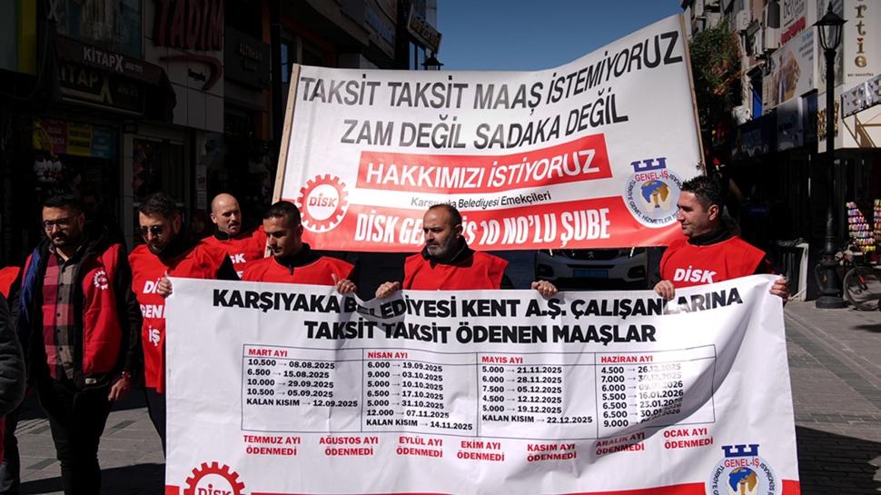 İzmir'in CHP'li Karşıyaka Belediyesi iştiraki Kent AŞ'de çalışan yaklaşık 540 işçi maaşlarını düzenli alamadıkları için gösteri yürüyüşü gerçekleştirdi. İşçilerin yerlerinin değiştirilmek istenmesini eleştiren belediye meclis üyeleri, "Bugün alın terinin karşılığını veremeyenlerin, işçilerin yerlerini değiştirerek susturmaya çalışması vicdani değildir." dedi.