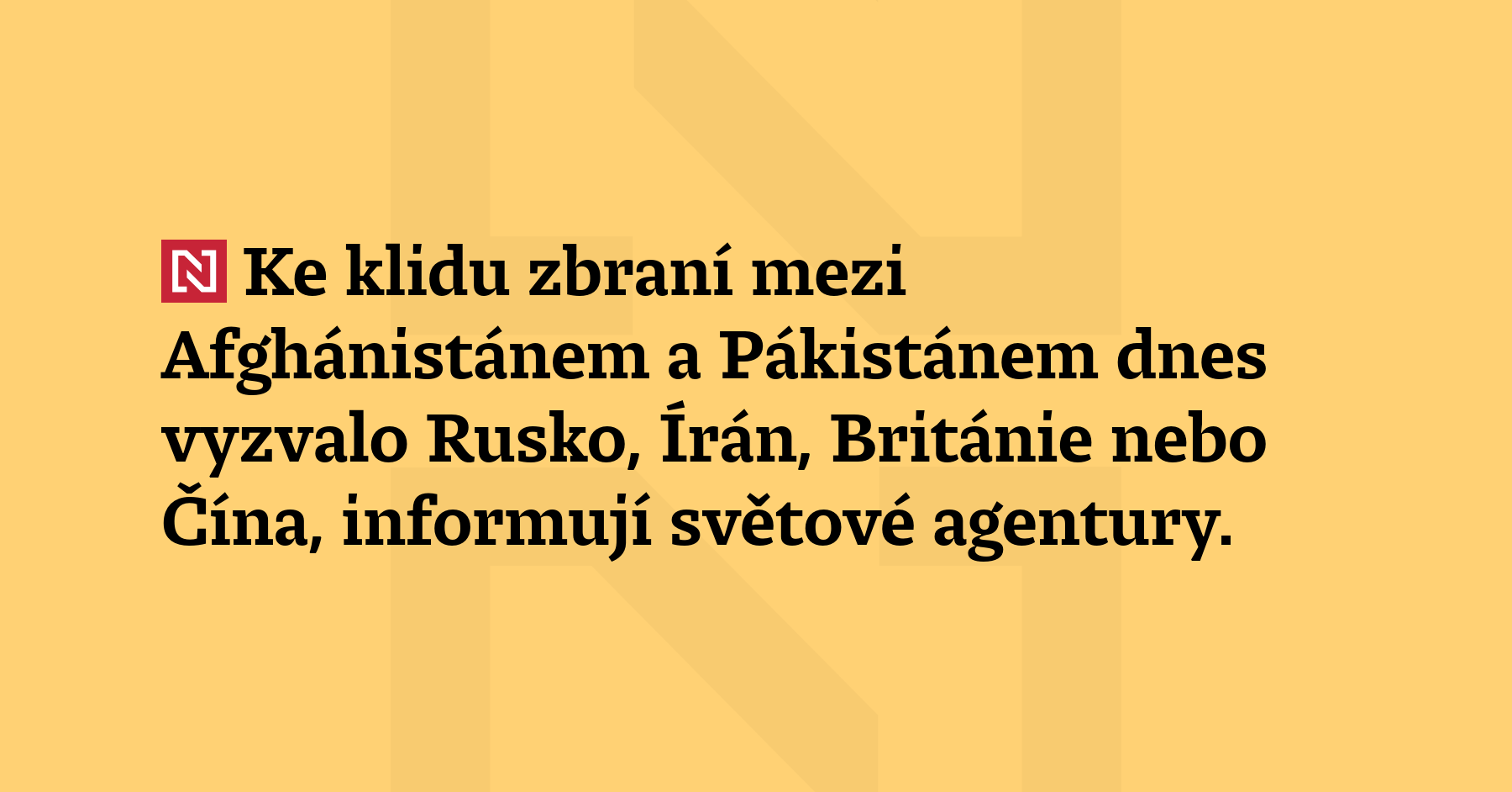 Ke klidu zbraní mezi Afghánistánem a Pákistánem dnes vyzvalo Rusko, Írán, Británie nebo Čína, informují světové agentury. Státy tím reagovaly na dnešní oznámení Islámábádu, že se nachází v otevřené válce s afghánským Tálibánem. Pákistán předtím v odvetě za čtvrteční přeshraniční údery bombardoval pozice tohoto vládnoucí afghánského hnutí podél hranic s Afghánistánem a také v Kábulu a Kandaháru. (ČTK, BBC)