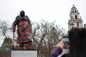 "פושע מלחמה ציוני": פסלו של וינסטון צ'רצ'יל הושחת בלונדון