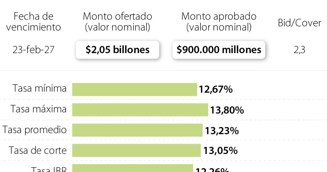 En la nueva subasta se hicieron posturas por un monto de $2,05 billones. Esto equivale a 2,3 veces el monto aprobado