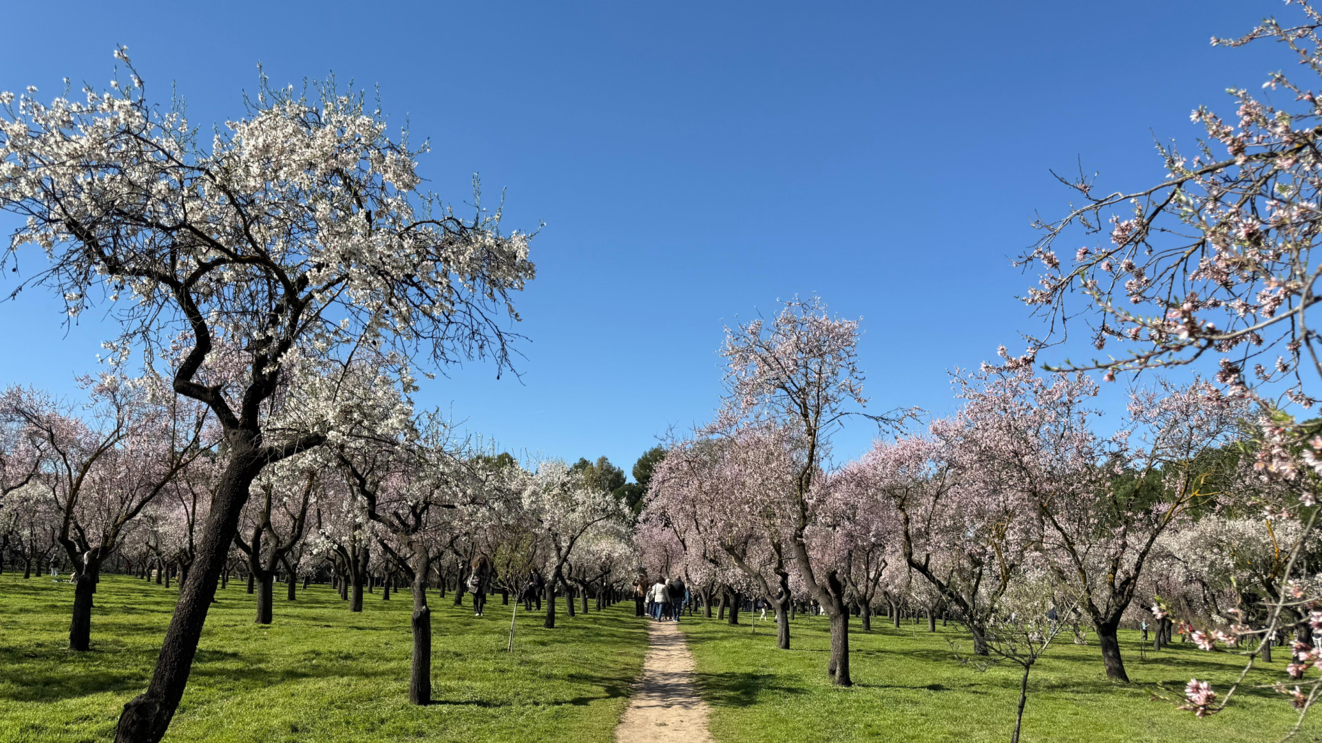 Madrid se viste de blanco y rosa: la floración de los almendros llega al parque de La Quinta de los Molinos