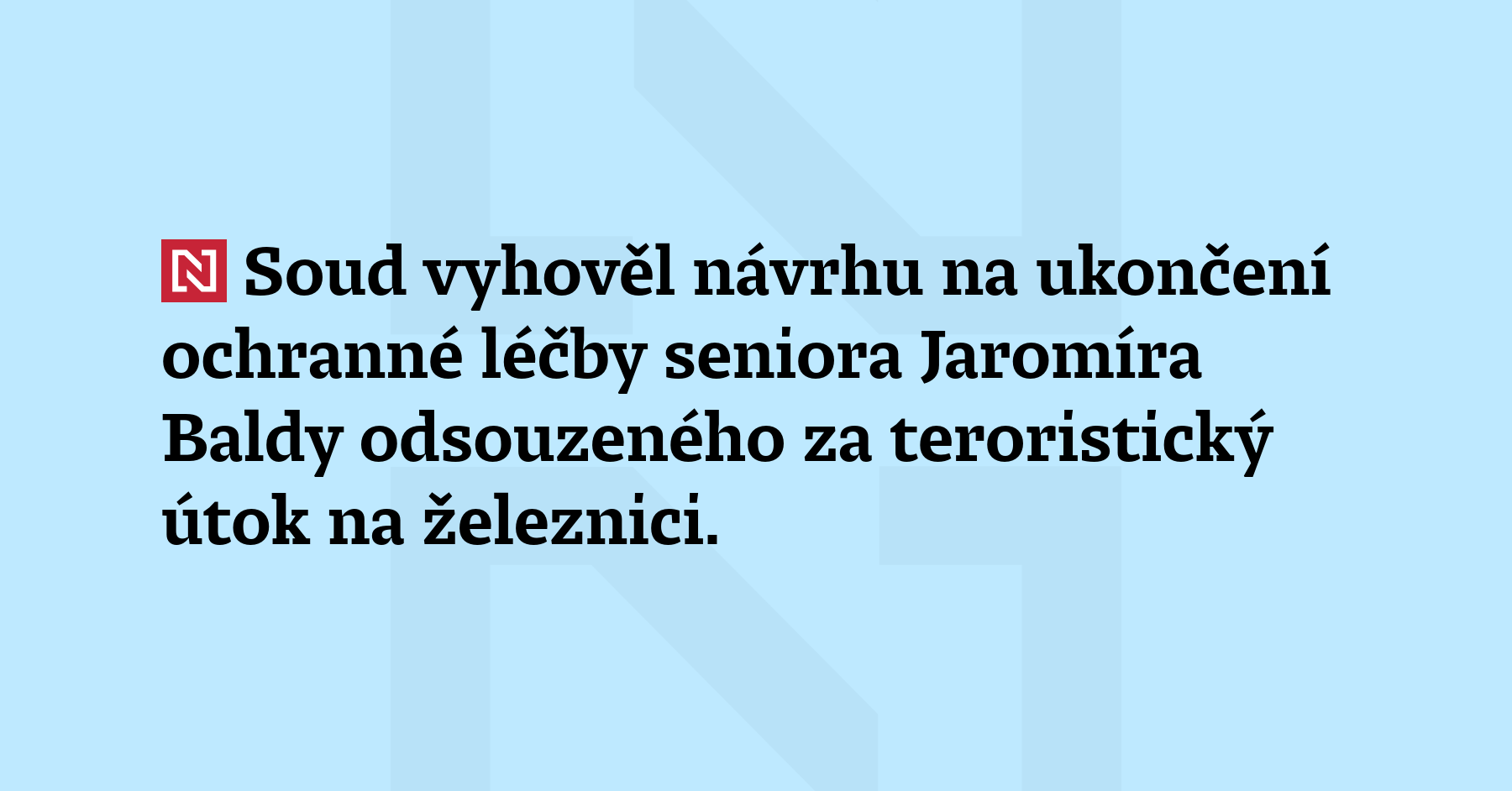 Soud vyhověl návrhu na ukončení ochranné léčby seniora Jaromíra Baldy odsouzeného za teroristický útok na železnici. V roce 2020 byl podmínečně propuštěn. (ČTK)
