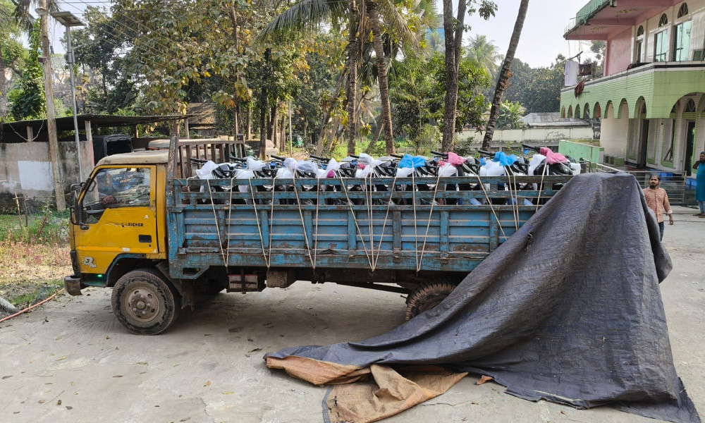 ঢাকা থেকে লুট হওয়া ট্রাকভর্তি ৯টি নতুন মোটরসাইকেল কুমিল্লায় উদ্ধার
