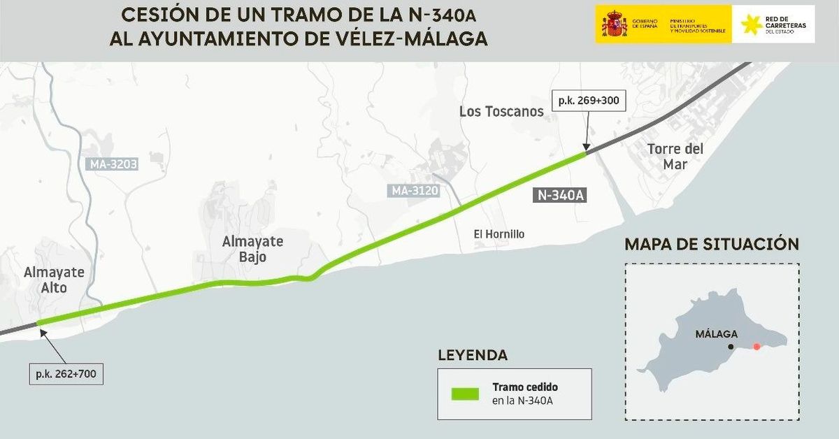 El Gobierno cede a Vélez-Málaga un tramo de la N-340A a su paso por Benajarafe y Almayate