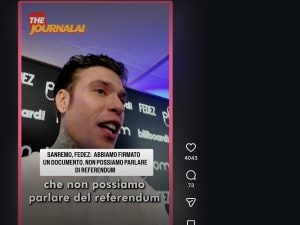 Raggiunto dalla pagina Instagram Thejournalai, collettivo attivissimo nel racconto della cronaca politica e di attualità, Fedez ha rivelato di non poter parlare di Referendum: "Abbiamo firmato una carta, tutti i concorrenti non possono parlarne". Continua a leggere