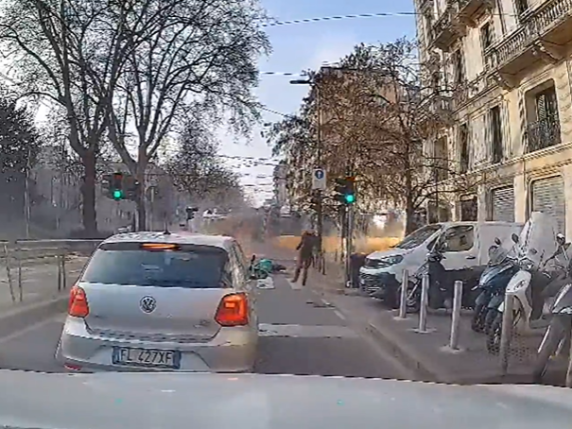 Le immagini dalla dashcam di un'auto ferma in viale Vittorio Veneto quando il tram è deragliato