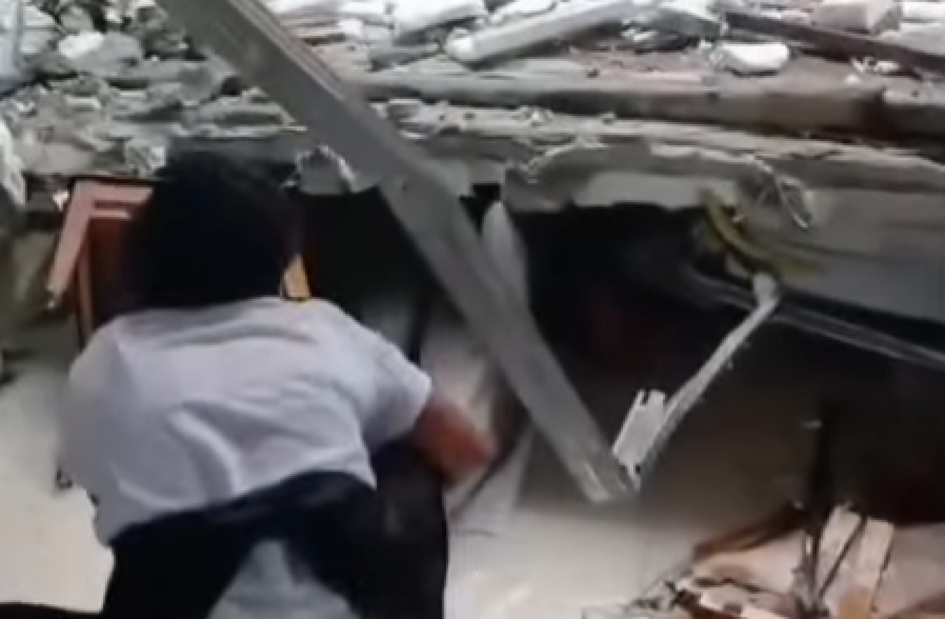 Mulher ficou soterrada sobre blocos de concreto e partes da estrutura