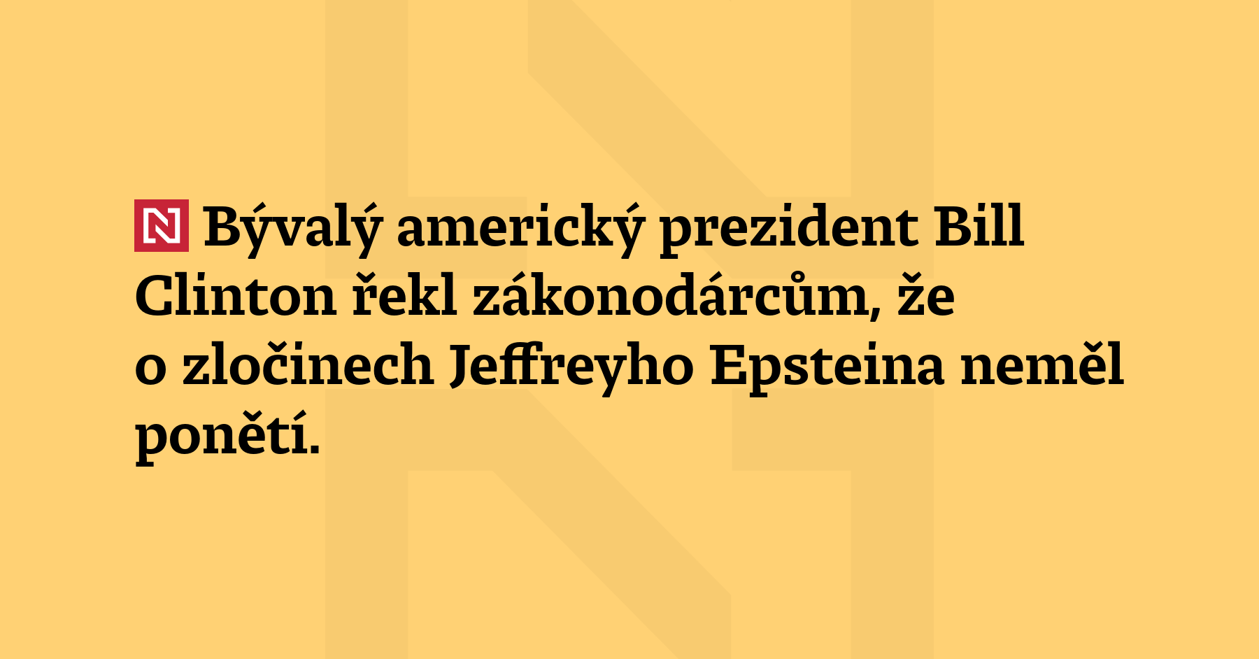 Bývalý americký prezident Bill Clinton řekl zákonodárcům, že o zločinech Jeffreyho Epsteina neměl ponětí. “Nic jsem neviděl a neudělal jsem nic špatně,“ dodal. (BBC)