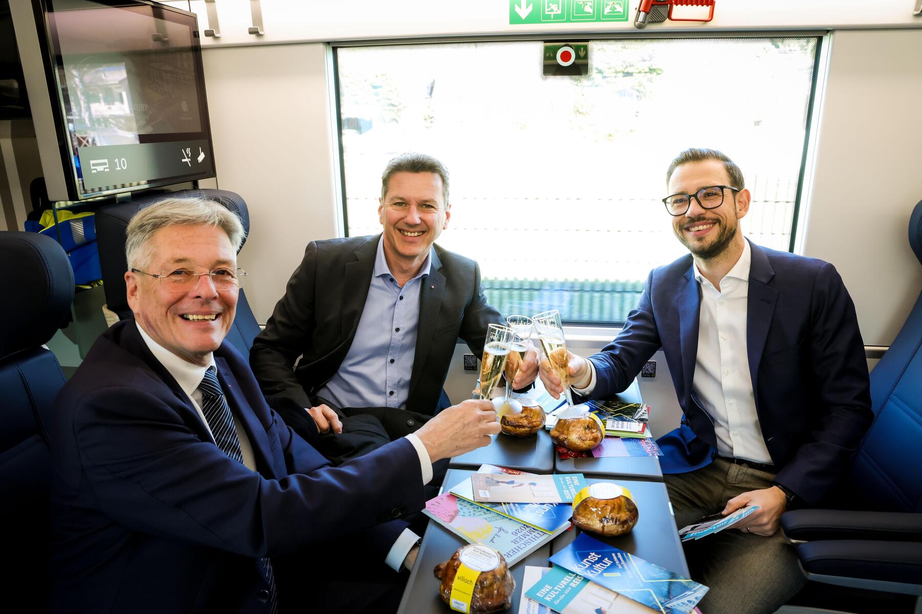 Die erste Fahrt der privaten Westbahn von Wien nach Villach auf der Südstrecke genoss eine illustre Gästeschar aus Kunst, Kultur, Politik und Wirtschaft.
