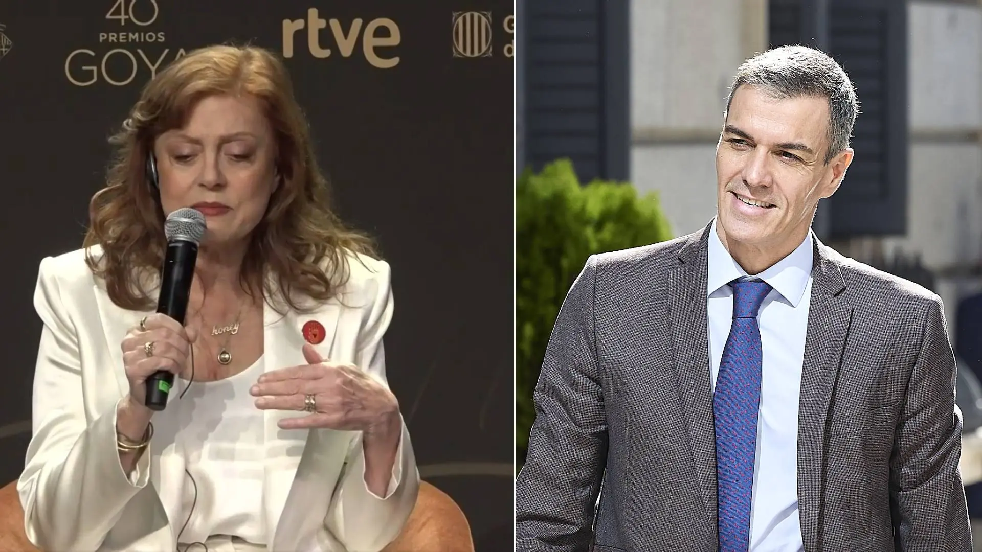 Susan Sarandon, Goya Internacional, se emociona por el apoyo de España a Gaza y Sánchez responde: "Es muy conmovedor"