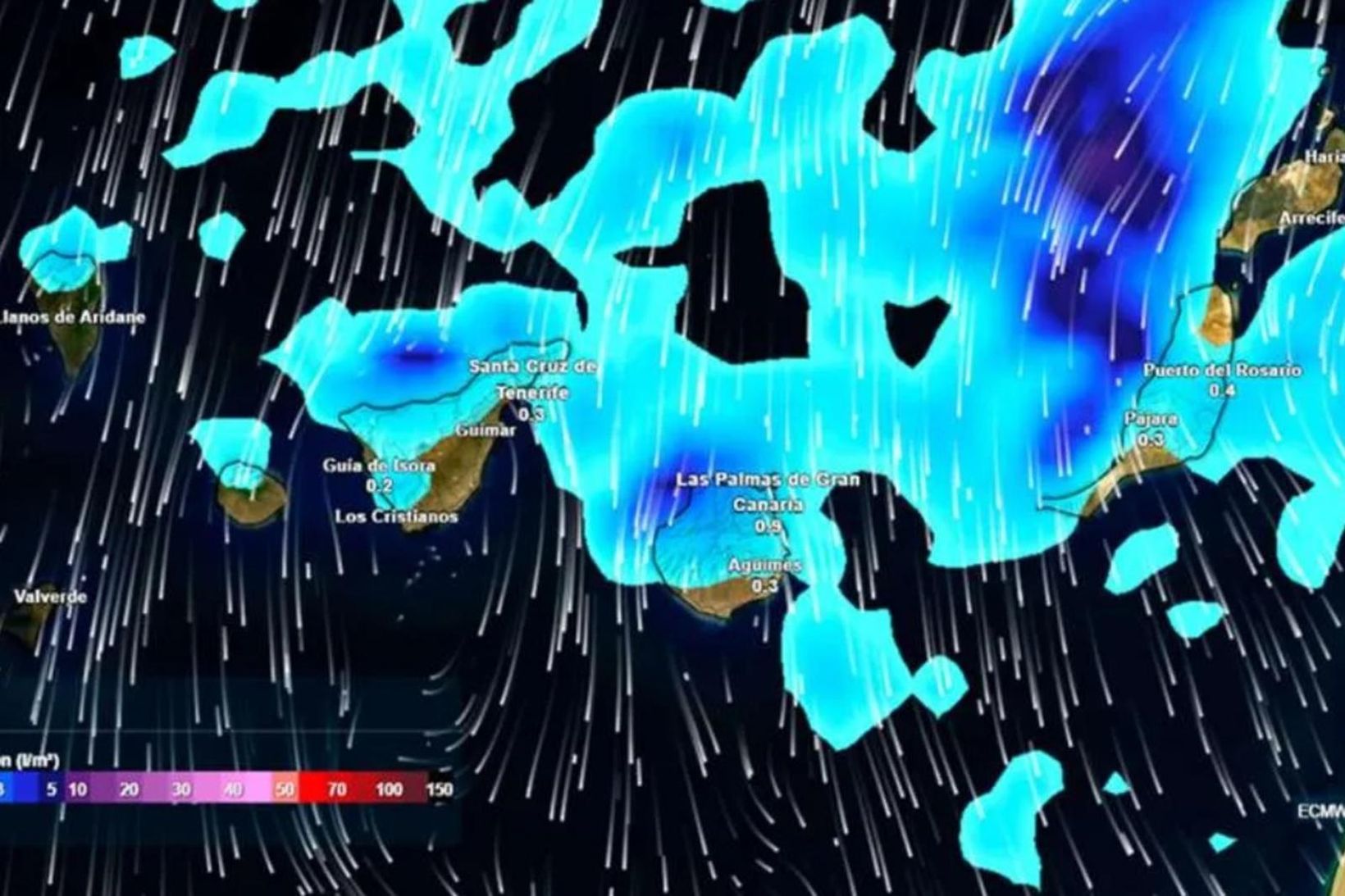 Almannavarnir Kanaríeyja hafa virkjað hæsta viðvörunarstig sitt vegna djúprar lægðar sem gengur nú yfir eyjarnar og hefur neyðarástandi verið lýst yfir í San Bartolomé de Tirajana, stærsta sveitarfélagi Gran Canaria að flatarmáli þar sem þjóðvarðliðið Guardia Civil er nú í viðbragðsstöðu.