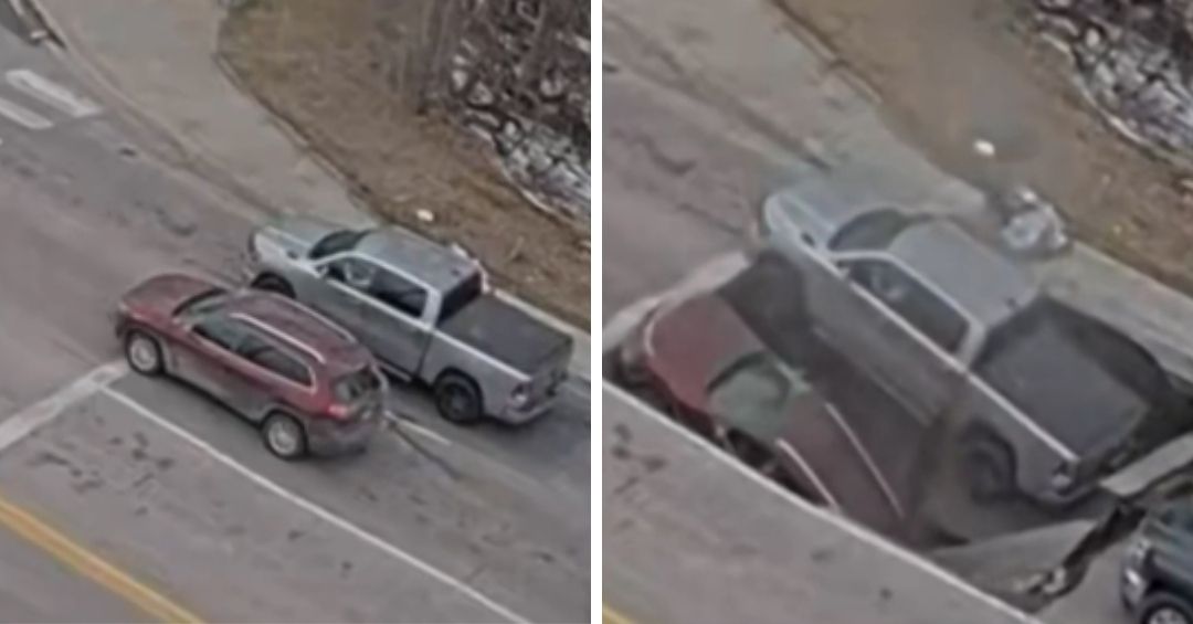 Viral: Impresionante video muestra a dos camionetas siendo “tragadas” por la tierra en EE. UU.