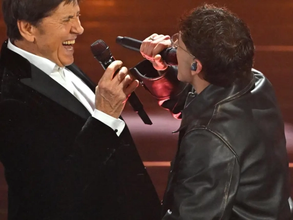 Gianni Morandi a sorpresa sul palco col figlio Tredici Pietro