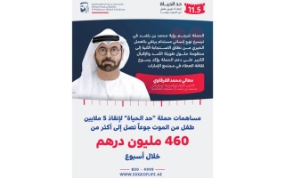 وصلت المساهمات في حملة «حدّ الحياة» لإنقاذ 5 ملايين طفل من الموت جوعاً، التي أطلقها صاحب السمو الشيخ محمد بن راشد آل More...