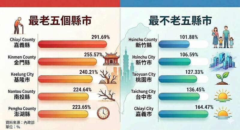根據內政部甫公布數據,全台已找嘸「年輕城市」!2024年竹科重鎮的新竹縣市還撐住幼年人口超過老年人口,即老化指數低於100%,但2025年已全數「淪陷」;隨著老齡與少子女...…