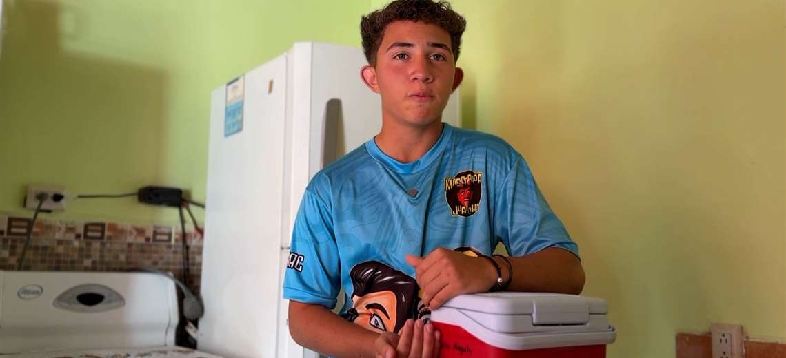 Isaac Araya, de 15 años, trabaja casa por casa en San José de la Montaña para apoyar a su familia y costear sus estudios mientras persigue su meta de convertirse en agente judicial.