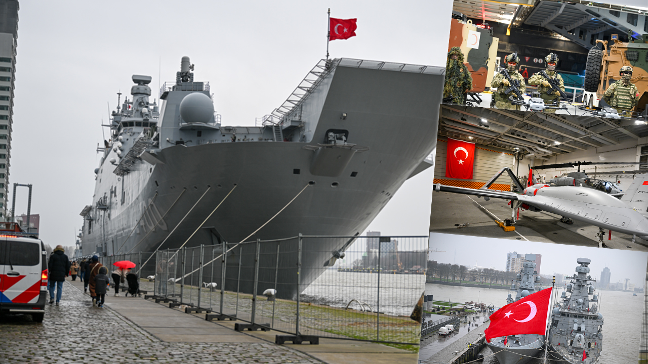 NATO'nun "Steadfast Dart 2026" tatbikatı kapsamında Hollanda'nın Rotterdam Limanı'nda demirleyen TCG Anadolu gemisinde Türk Savunma Sanayisi Fuarı düzenlendi.