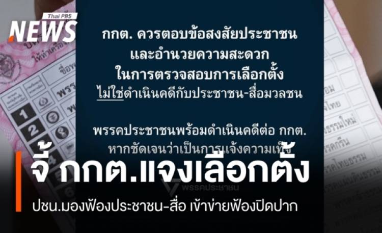 วันนี้ (28 ก.พ.2569) พรรคประชาชน โพสต์เฟซบุ๊ก ระบุข้อความว่า กกต. ควรตอบข้อสงสัยประชาชน โดยการชี้แจงและอำนวยความสะดวกในการตรวจสอบ ไม่ใช่ตอบโต้ประชาชน โดยการดำเนินคดีกับประชาชน-สื่อมวลชนด้วยข้อกล่าวหาที่ไม่ได้สัดส่วนและเสี่ยงจะถูกมองว่าเป็นการฟ้องปิดปาก การเลือกตั้งทั่วไปตั้งแต่เมื่อวันที่ 8 ก.พ. ที่ผ่านมา เป็นการจัดการเลือกตั้งที่เต็มไปด้วยข้อสงสัยและข้อครหาจากประชาชนถึงประสิทธิภาพและความโปร่งใส ไม่ว่าจะเป็นปัญหาเรื่องการรายงานผลการเลือกตั้งผ่านเว็บไซต์ของ กกต. ที่มีความล่าช้า, การพบใบขีดนับคะแนนเลือกตั้ง (สส. 5/11) ในพื้นที่ลักษณะคล้ายกองขยะ, ผลการนับคะแนนรายหน่วยที่ไม่ตรงกันในบางหน่วยระหว่างใบขีดนับคะแนน (สส. 5/11) กับรายงานผลการนับคะแนน (สส. 5/18), การรับรองผลการเลือกตั้ง ส.ส. เขต ก่อนที่จะมีการประกาศคะแนน 100 % หรือการเปิดเผยจำนวนผู้มาใช้สิทธิเลือกตั้ง, การนับคะแนนใหม่ในบางหน่วยที่นำไปสู่คะแนนที่เปลี่ยนแปลงไปอย่างมีนัยสำคัญ, รวมไปถึงการออกแบบบัตรเลือกตั้งให้มีบาร์โค้ดที่ระบุรหัสบัตรและทำให้สามารถตรวจสอบย้อนกลับไปได้ว่าเป็นบัตรที่ลงคะแนนโดยใคร แต่ในช่วง 1-2 สัปดาห์ที่ผ่านมา แทนที่ กกต. จะเลือกใช้วิธีการสื่อสารและชี้แจงกับประชาชนและสื่อมวลชนที่ตั้งข้อสังเกตอย่างสม่ำเสมอและในรูปแบบที่เปิดให้มีการถาม-ตอบได้ เพื่อให้สิ้นข้อสงสัย กกต. กลับเลือกใช้วิธีการสื่อสารทางเดียวผ่านเอกสารแถลงการณ์ที่ไม่สามารถคลายข้อสงสัยในหลายประเด็นได้ โดย ล่าสุดเมื่อคืนที่ผ่านมา (27 ก.พ.) ทาง กกต. ได้ออกแถลงการณ์ยืนยันกระแสข่าว ว่า กกต. ได้ดำเนินการแจ้งความกองบังคับการปราบปราม เพื่อฟ้องประชาชนที่ได้ดำเนินการตรวจสอบ กกต. เกี่ยวกับบัตรเลือกตั้ง ซึ่งรวมถึงเหตุการณ์ในวันที่ 22 ก.พ. ที่มีการเลือกตั้งใหม่ในหน่วยเลือกตั้งที่ 9 เขตเลือกตั้งที่ 15 กรุงเทพมหานคร โดยรายชื่อที่ถูก กกต. แจ้งความดำเนินคดี คาดว่าประกอบไปด้วย นักวิชาการ ภาคประชาชน สื่อมวลชน และ นายพริษฐ์ วัชรสินธุ โฆษกพรรคประชาชน ในส่วนของการแจ้งความดำเนินคดีต่อประชาชนและสื่อมวลชน ทางพรรคประชาชนขอแสดงความไม่เห็นด้วยอย่างยิ่งกับการตัดสินใจดังกล่าวของ กกต. หากประชาชนมีการตั้งคำถามและตรวจสอบการดำเนินการของหน่วยงานรัฐโดยสุจริต หน่วยงานรัฐควรชี้แจงและทำความเข้าใจกับประชาชน ทำทุกอย่างให้โปร่งใส พร้อมทั้งอำนวยความสะดวกให้กับประชาชนในการตรวจสอบ แต่ทาง กกต. กลับเลือกใช้วิธีการดำเนินคดีด้วยข้อกล่าวหาที่ดูจะขัดแย้งและไม่ได้สัดส่วนกับข้อเท็จจริงที่ปรากฏต่อสา