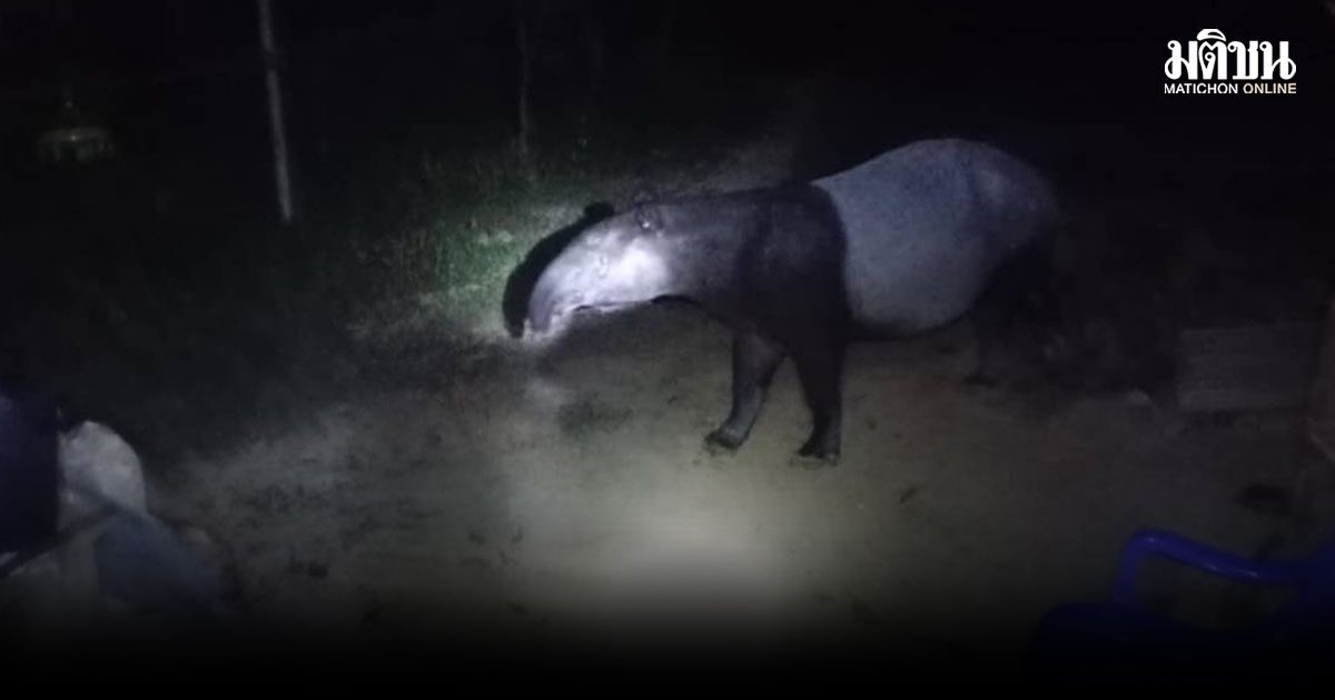 ฮือฮา! พบ ‘สมเสร็จ’ สัตว์ป่าสงวนหายาก ลงเขากินผลไม้ในสวน ที่คลองหอยโข่ง สงขลา
