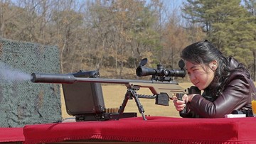 Korea Utara (Korut) merilis foto terbaru dan langka mengenai putri Kim Jong Un, Kim Ju Ae, latihan menembak.