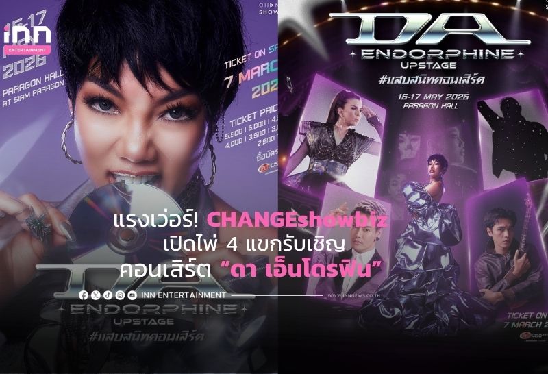 แรงเว่อร์! CHANGEshowbiz เปิดไพ่ 4 แขกรับเชิญคอนเสิร์ต “ดา เอ็นโดรฟิน” แสบหนักมาก! พร้อมเงา SECRET GUEST สุดพีค! ของ “DA ENDORPHINE UPSTAGE แสบสนิทคอนเสิร์ต”