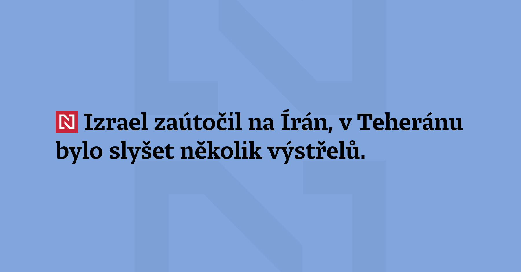 Izrael zaútočil na Írán a vyhlásil výjimečný stav, uvedl izraelský ministr obrany Jisra’el Kac. Preventivní útok má podle něj za úkol odstranit hrozby pro Izrael. V Teheránu bylo slyšet několik výstřelů, ulicemi stoupá kouř. (Times of Israel, Al-Džazíra)