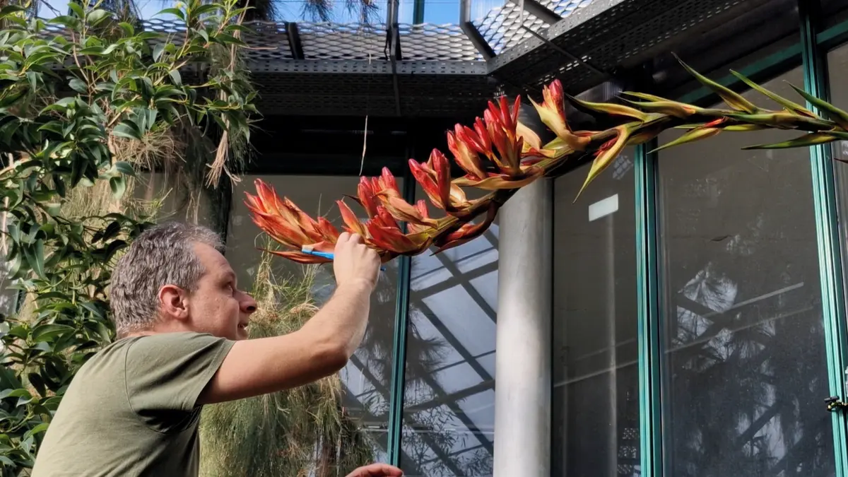 Červenou barvou výrazně zářící do okolí dává vědět opylovačům, že kvete. Přitahuje právě tímto způsobem ptáky, kteří její opylení zajistí a červená barva jim připomíná oblíbenou potravu. Řeč je o impozantní rostlině z Austrálie, Doryanthes palmeri, která v Botanické zahradě v Liberci vykvetla po třiceti letech. Mimořádnou podívanou si ale návštěvníci mohou užít jen pouhý měsíc.