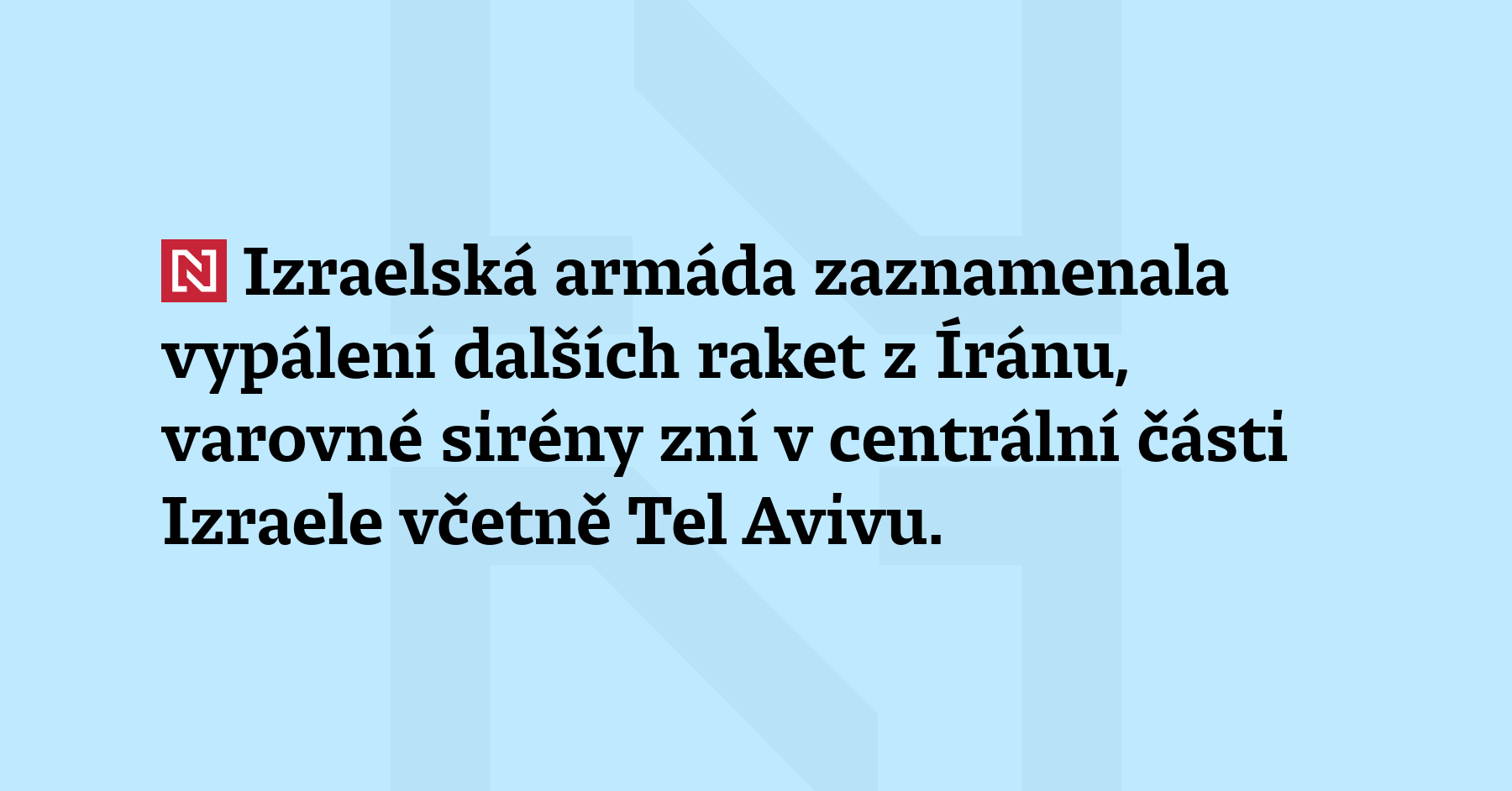 Izraelská armáda zaznamenala vypálení dalších raket z Íránu, varovné sirény zní v centrální části Izraele včetně Tel Avivu. (ČTK)