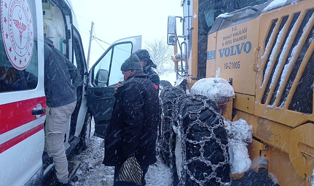 Tokat'ın Erbaa ilçesinde kar yağışı nedeniyle yolu kapanan köydeki hasta, İl Özel İdaresi ekiplerinin desteğiyle hastaneye yetiştirildi.