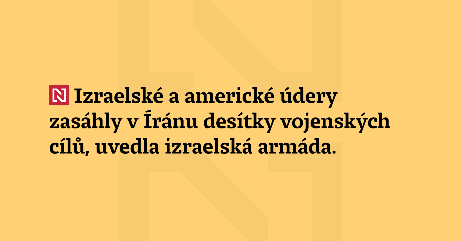 Izraelské a americké údery zasáhly v Íránu desítky vojenských cílů, uvedla izraelská armáda. Dodala, že bojové akce nadále pokračují. (ČTK)