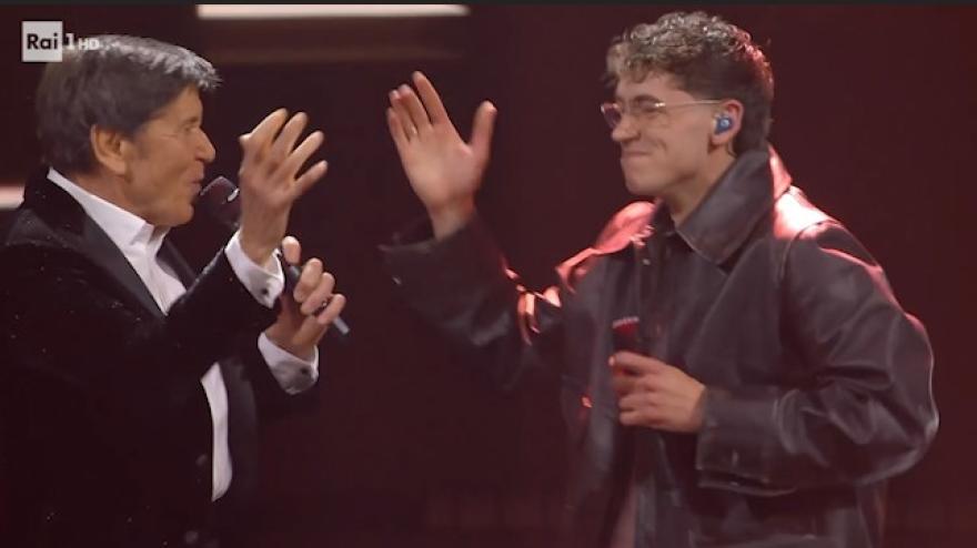 Sale sul palco con la voce rotta: Gianni Morandi duetta col figlio Tredici Pietro e si commuove