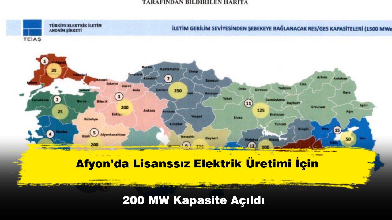 EPDK’nın 26 Şubat 2026 tarihli kararıyla, lisanssız elektrik üretimi başvuruları için Afyonkarahisar’ın da yer aldığı bölgede 30 Nisan 2026’ya kadar 200 MW kapasite tahsis edildi.