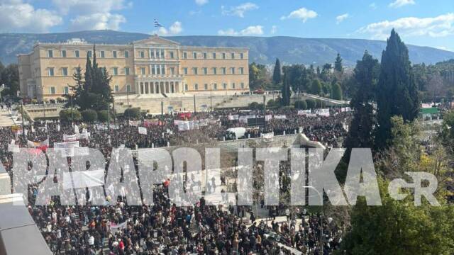 Πλήθος κόσμου συρρέει στην πλατεία Συντάγματος από νωρίς το πρωί με αίτημα την απονομή δικαιοσύνης για την τραγωδία των Τεμπών