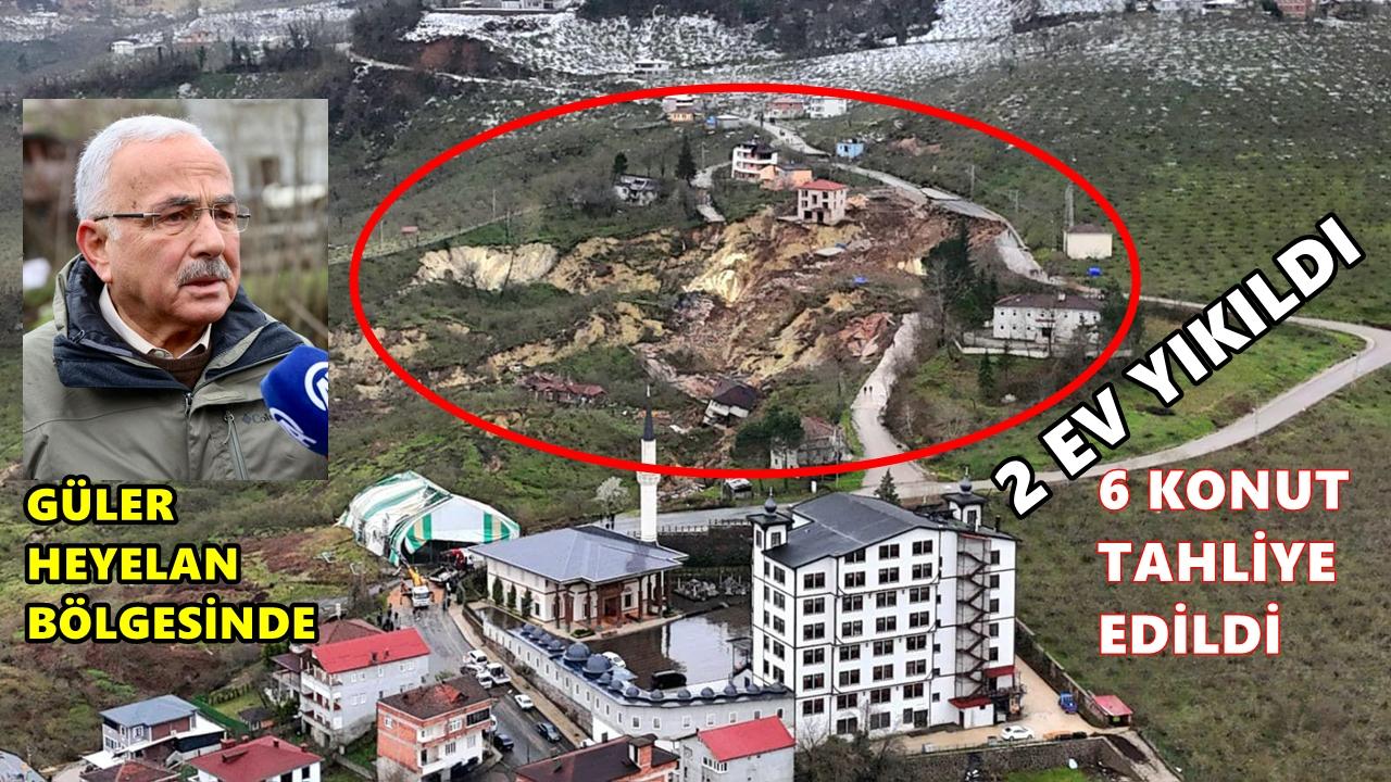 Ordu Büyükşehir Belediye Başkanı Mehmet Hilmi Güler, yaklaşık 100 dönümlük alanda meydana gelen ve 30 metreyi bulan zemin kaymasına yol açan heyelanı yerinde inceledi. 2 ev ve 1 halı sahanın yıkıldığı bölgede 6 konut boşaltılırken, yol ulaşıma kapatıldı.