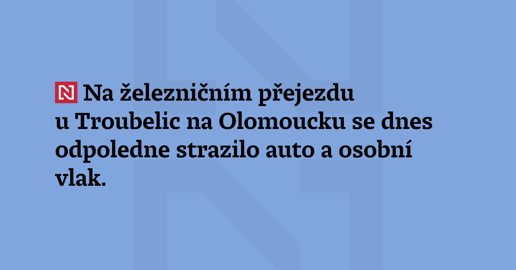 Na železničním přejezdu u Troubelic na Olomoucku se dnes odpoledne strazilo auto a osobní vlak. Řidiče auta ošetřili záchranáři. Provoz na trati je kvůli nehodě v úseku mezi Uničovem na Olomoucku a Libinou na Šumpersku zcela zastaven, cestující mohou využít náhradní autobusovou dopravu. České dráhy očekávají konec omezení okolo 16 hodiny. (ČTK)