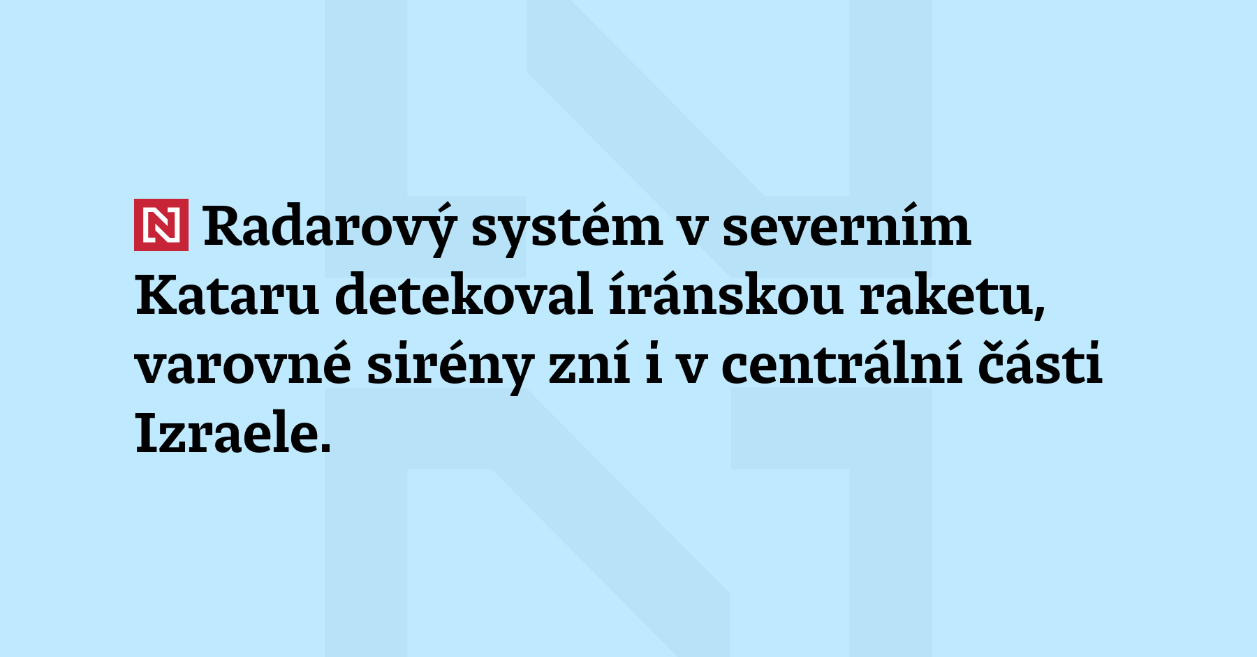 Radarový systém v severním Kataru detekoval íránskou raketu, varovné sirény zní i v centrální části Izraele. Izraelské obranné síly tam podle informací médií pracují na zastavení raket. (Al-Džazíra, Times of Israel)