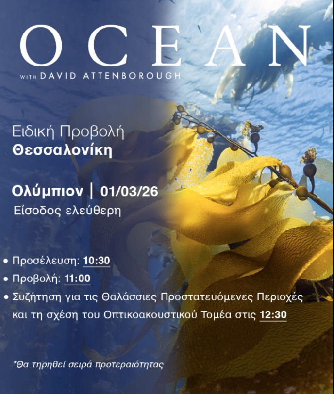 Το ντοκιμαντέρ «Ωκεανός με τον Ντέιβιντ Ατένμπορο» (Ocean with David Attenborough) ταξιδεύει τους θεατές σε ένα συναρπαστικό ταξίδι, δείχνοντας ότι δεν υπάρχει πουθενά πιο ζωτικό για την επιβίωσή μας, πιο γεμάτο ζωή, θαύματα ή εκπλήξεις από τον ωκεανό. Ο διάσημος ραδιοτηλεοπτικός παραγωγός και κινηματογραφιστής αποκαλύπτει πώς η ζωή του συνέπεσε με τη μεγάλη εποχή της ... Περισσότερα www.ertnews.gr
