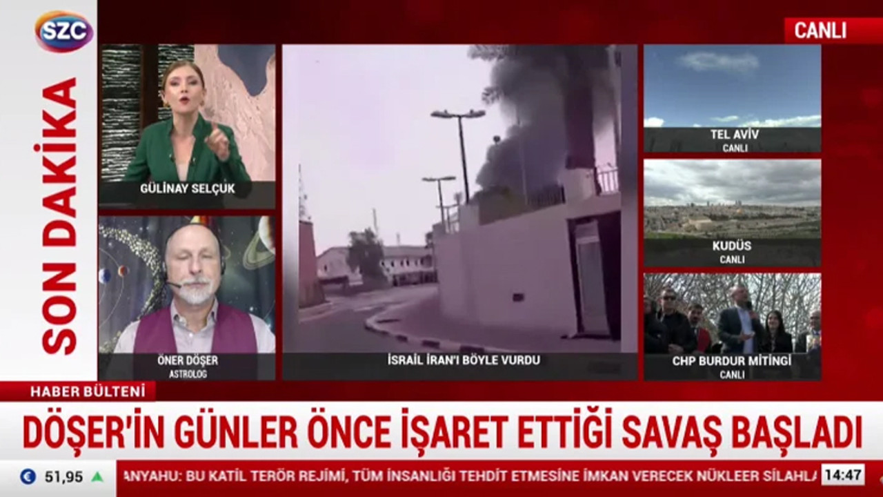Sözcü TV, İran-ABD/İsrail savaşının geleceğini astrolog Öner Döşer’e yorumlattı.