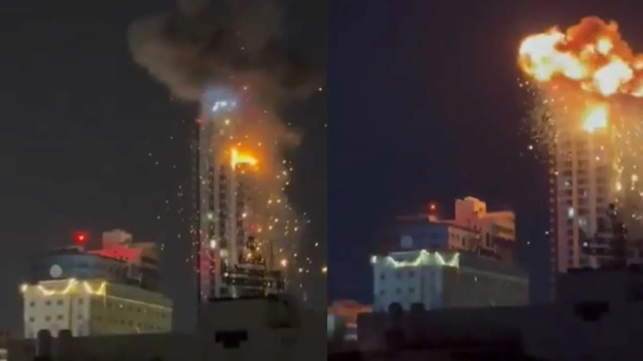 İran Bahreyn'deki gökdeleni böyle vurdu! Alevler gökyüzünü sardı