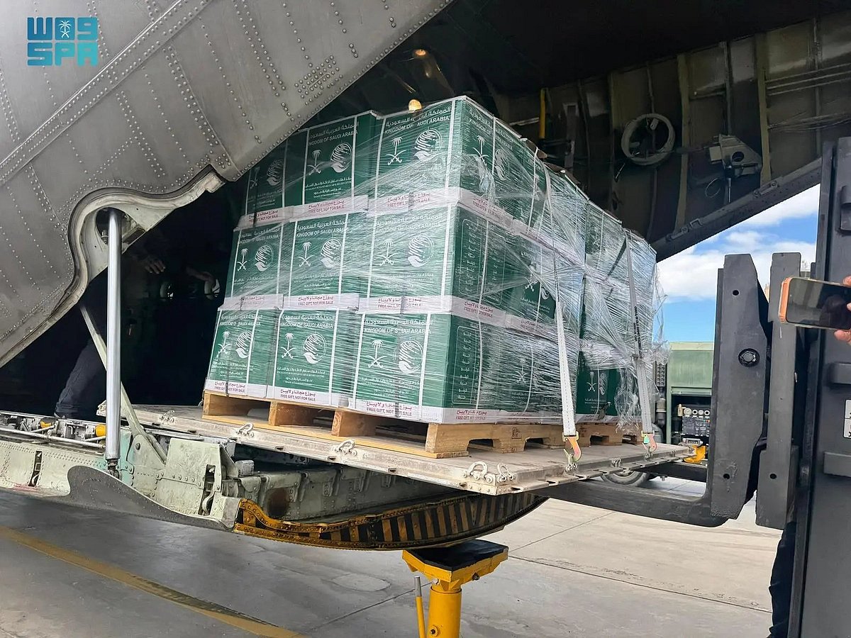 الطائرة الإغاثية السعودية الـ 82 تصل مطار العريش فى طريقها إلى غزة
