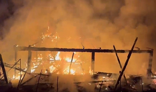 Ovacık'ta 2 katlı ahşap ev yandı