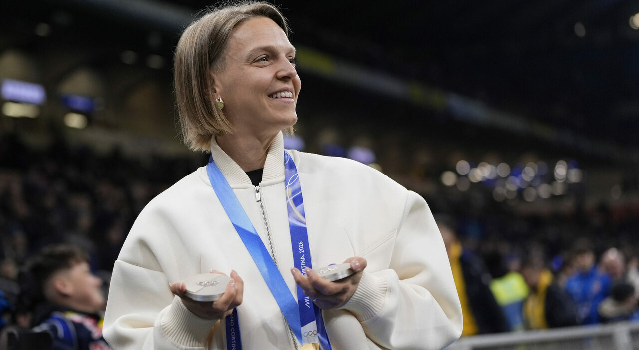 #arianna fontana a #san siro per Inter-Genoa: l'atleta azzurra espone le medaglie olimpiche di Milano-Cortina