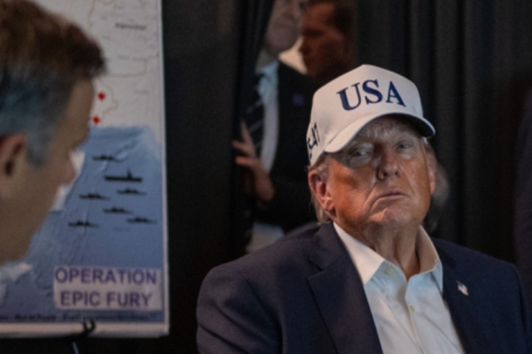这张由白宫于X日发布的图片显示,周六(2月28日),川普总统、白宫幕僚长苏西·威尔斯和国务卿马可·卢比奥正在监控美国在伊朗的军事行动。图片部分内容已被发布方模糊处理。(The White House/X)