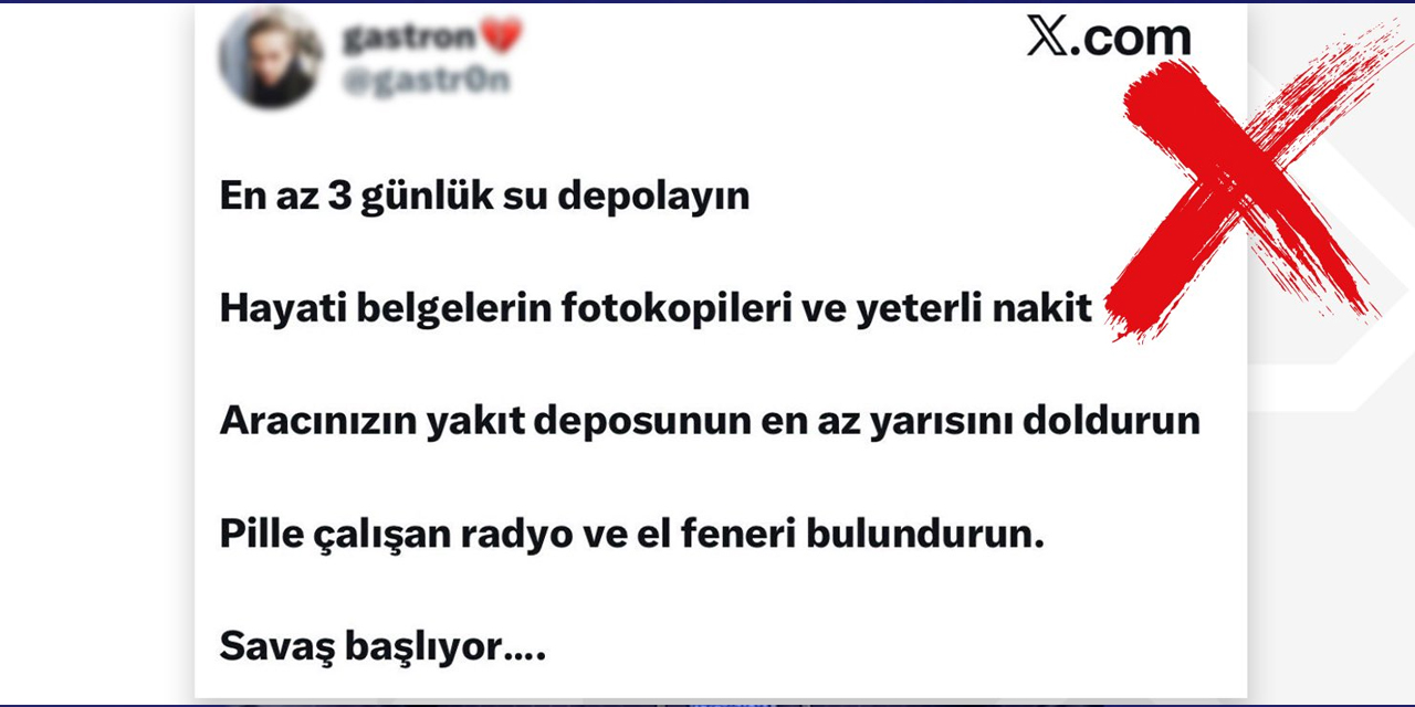 Cumhurbaşkanlığı İletişim Başkanlığı Dezenformasyonla Mücadele Merkezi, sosyal medyadaki “savaş başlıyor” iddialarının asılsız olduğunu açıkladı.