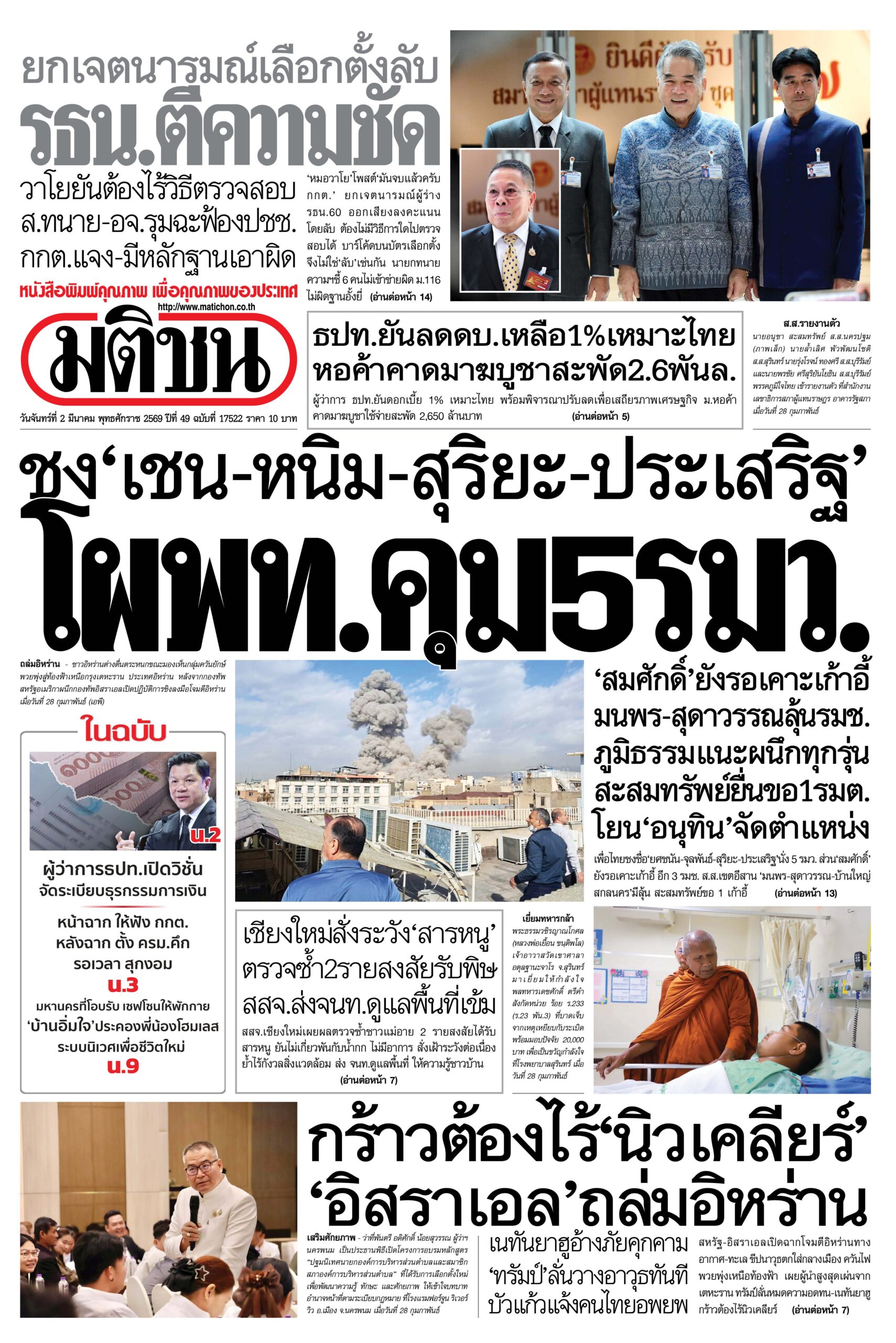 หน้า 1 หนังสือพิมพ์มติชน วันนี้
